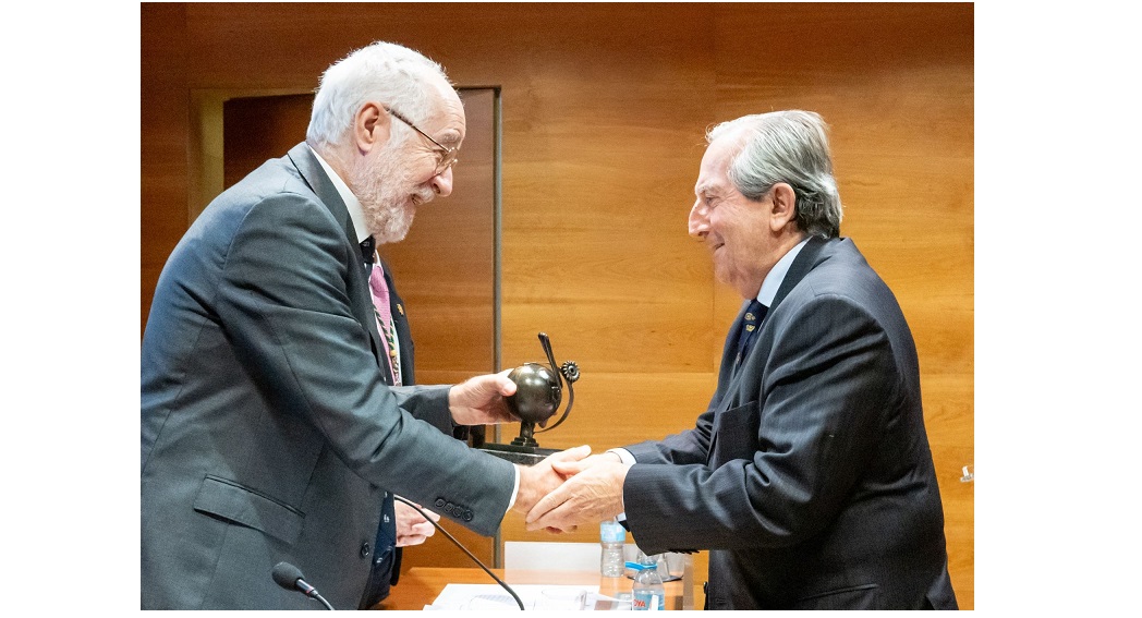 7. Francisco Cal recibiendo la escultura y el diploma